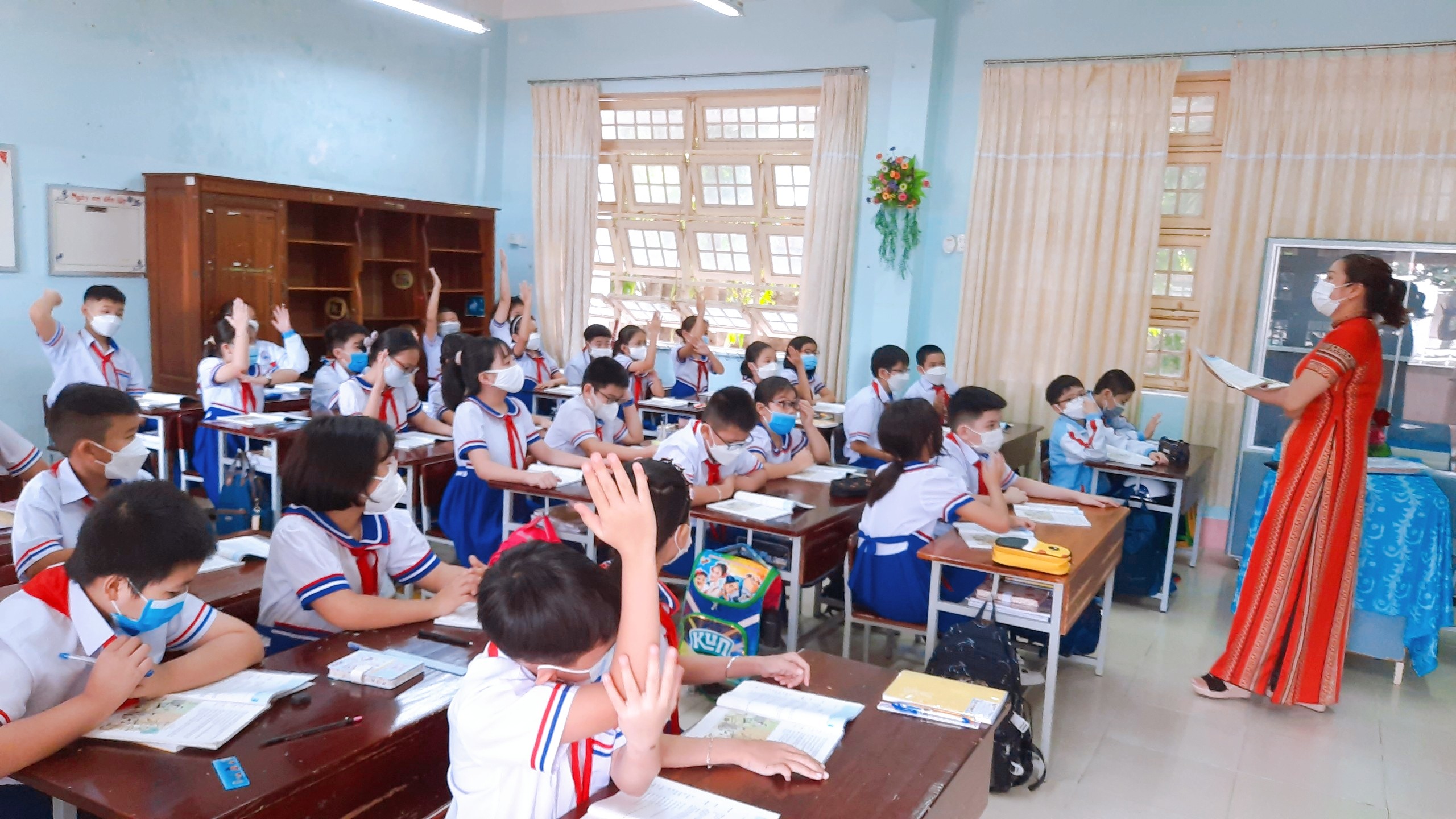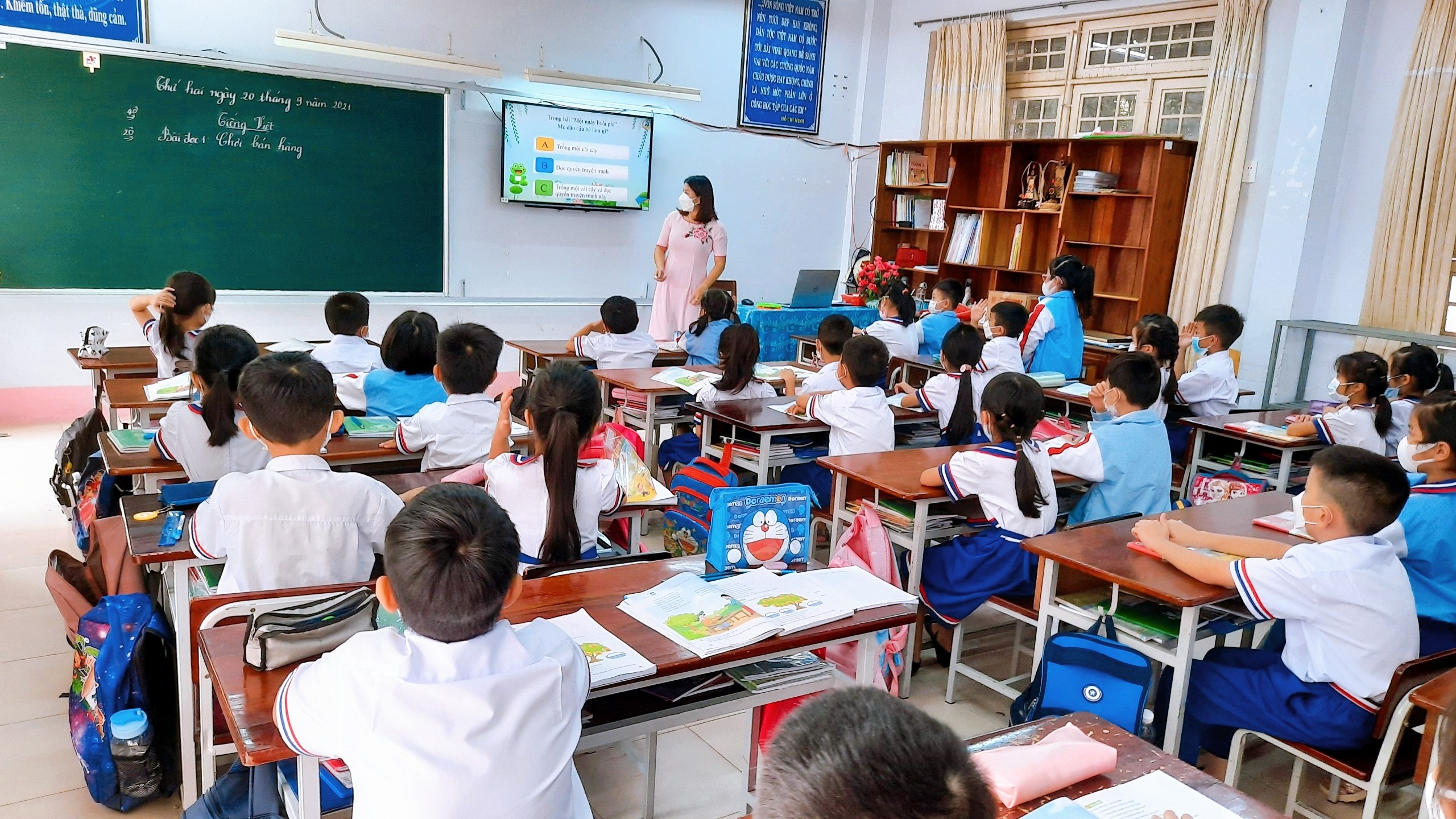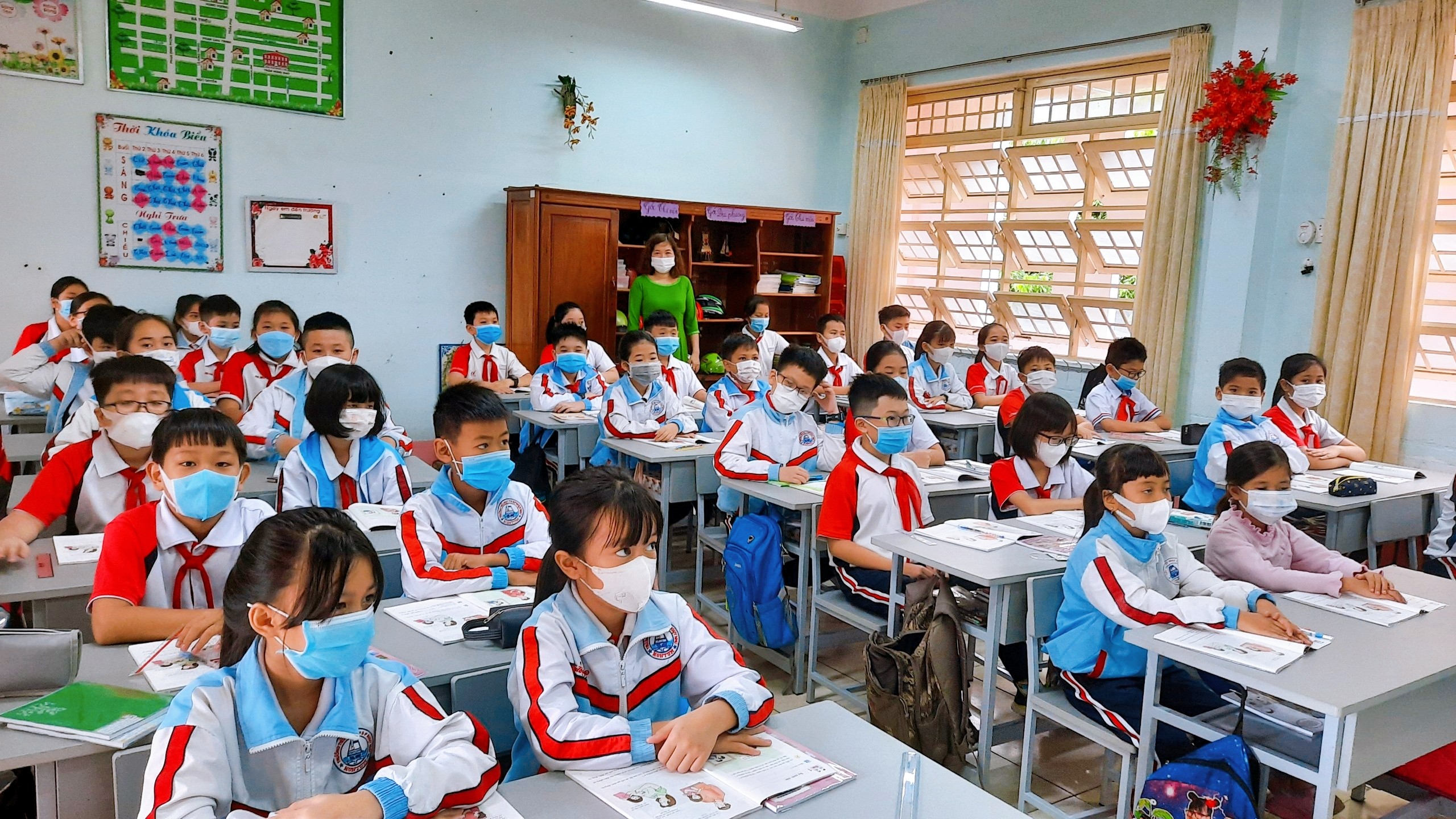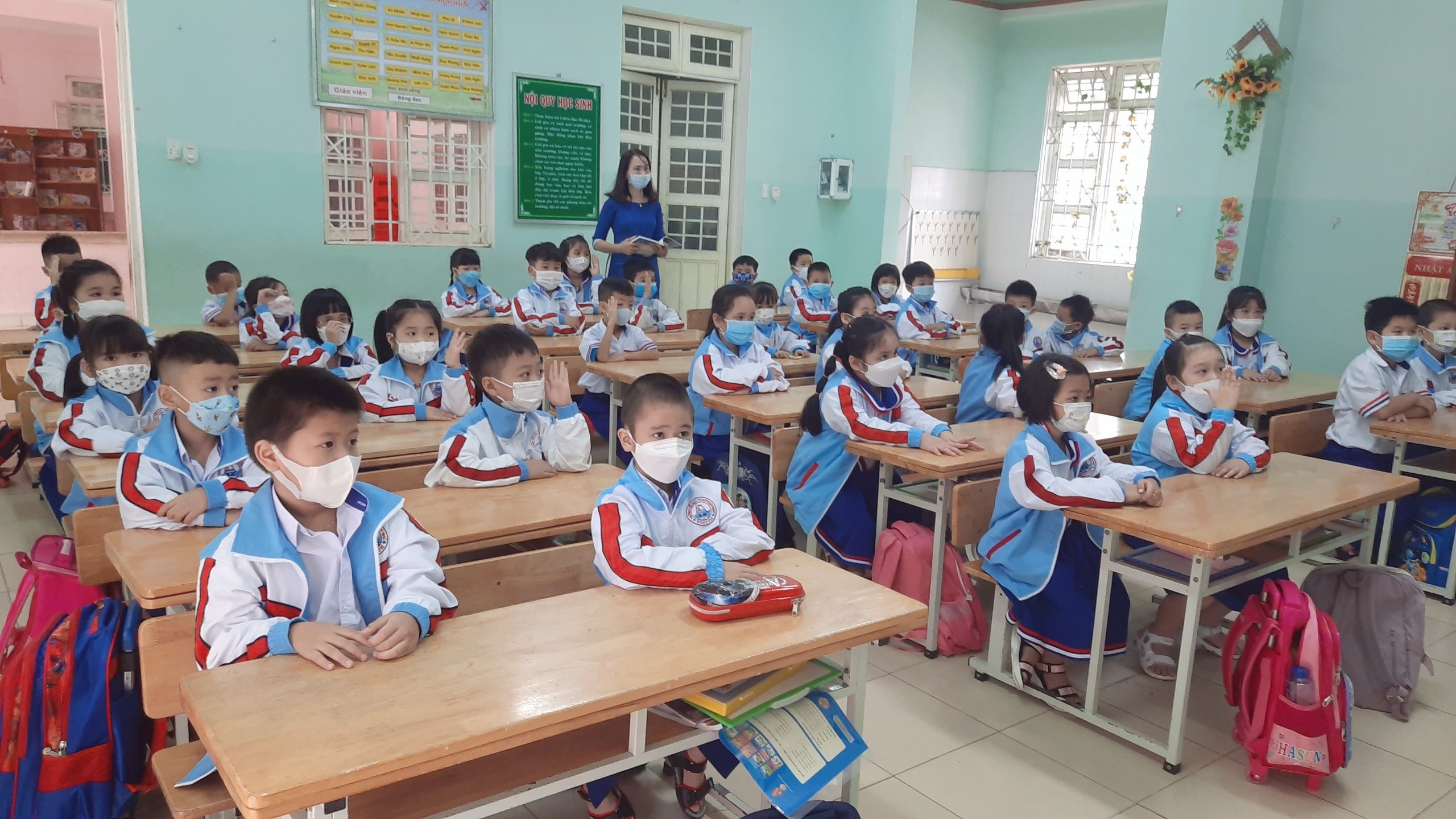 Sau nhiều tháng nghỉ học phòng chống dịch bệnh Covid-19, đến hôm nay các em học sinh đã được quay trở lại trường học. Buổi đầu đến lớp thật là vui, nhất là các em học sinh lớp một, lần đầu tiên bước chân vào ngưỡng cửa trường tiểu học với bao điều mới lạ. Hình ảnh các em học sinh vui đến trường ngày đầu năm học mới 2021- 2022.